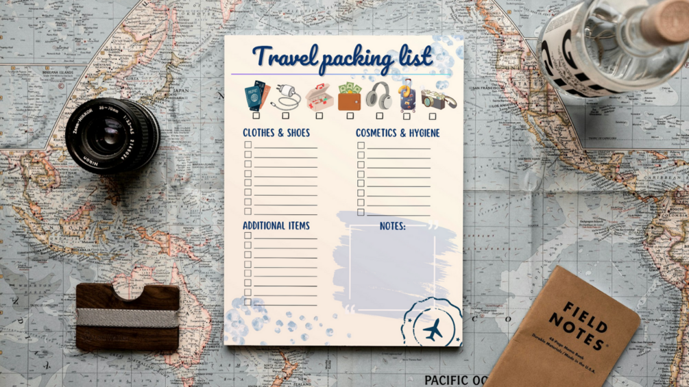 ✔ Comprehensive Checklist – covers clothing, toiletries, gadgets, travel documents & more.